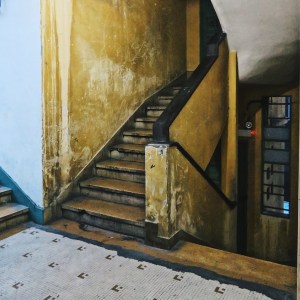 跟其他藏在樓上的店家一樣入口依舊很神秘,或是更驚悚嚇人一些。搭電梯上九樓要3000VND,約台幣4塊錢,超無感的收費,就搭吧。上樓之後覺得,哇!真的是公寓欸!因為他真的是公寓呀!只是碰巧裡面有幾家咖啡廳,不是整棟公寓都是咖啡廳。請把這點謹記在心,因為我抱著一個「哇~整棟公寓都是很棒咖啡廳」的憧憬去的,然後夢就碎了!可是不只我有這種憧憬吧?看網路上的照片都是美輪美奐、文藝氣息爆棚,可實際上這棟公寓裡,有住家、民宿、餐廳、服飾店、咖啡廳,總之很(龍蛇)混雜。以為是有規劃的文青聚落,結果真的就是老公寓呀!公共空間的維護很驚人(有維護嗎?),或許喜歡廢墟感的會很愛吧?不誇張,請看以下照片。